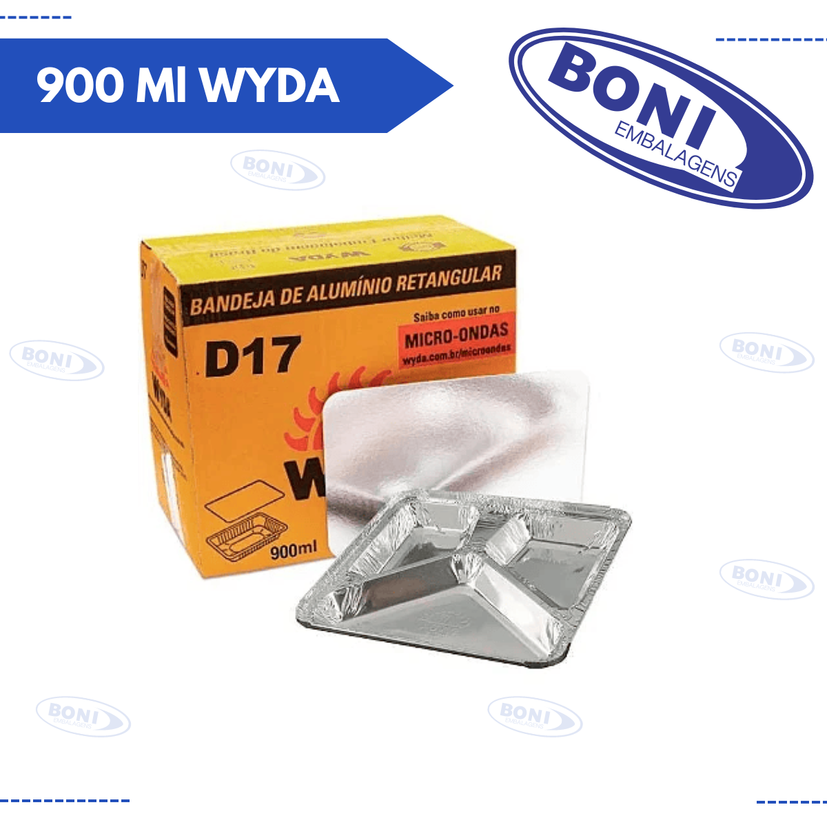 A Bandeja de Alumínio D17 com 3 divisórias da Wyda é perfeita para armazenar, assar e transportar refeições completas com praticidade. Suas divisórias permitem separar os alimentos, preservando a apresentação e os sabores. Ideal para uso em marmitas, eventos, delivery e refeições caseiras. Produzida com alumínio de alta qualidade, oferece resistência, segurança e é reciclável.
