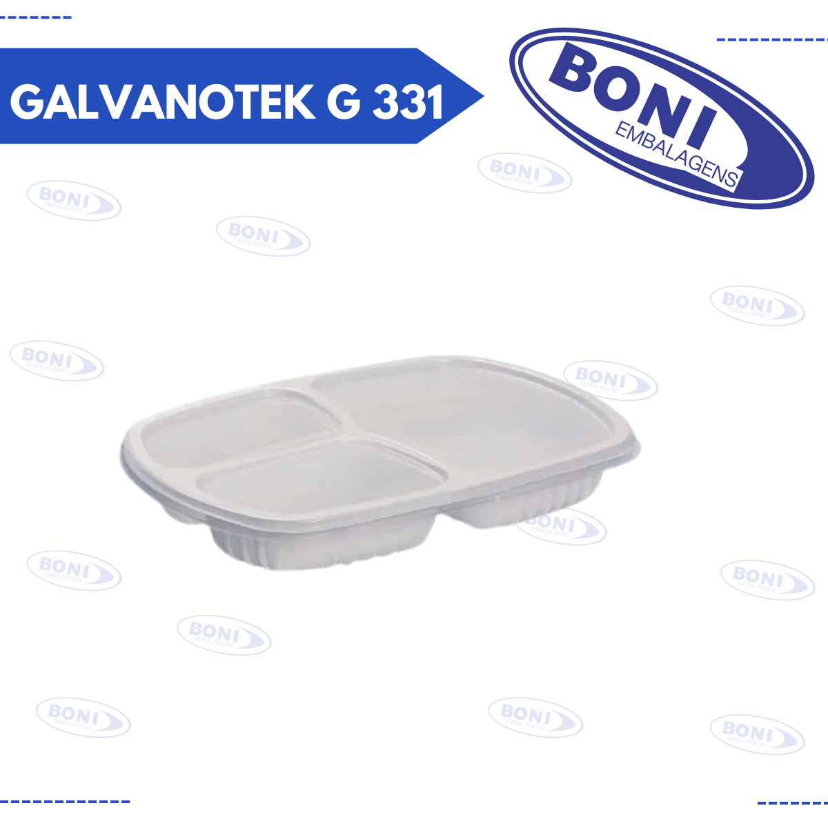 A Bandeja Galvanotek G 331 é uma embalagem prática e resistente, projetada para armazenar e transportar alimentos de forma segura. Com três divisórias, ela permite separar diferentes tipos de alimentos em um único recipiente, mantendo-os organizados e evitando o contato entre eles. Possui capacidade total de 850 ml, ideal para refeições balanceadas. Feita com material durável, é uma excelente opção para uso em delivery, restaurantes e outros serviços alimentares. O pacote contém 100 unidades.
