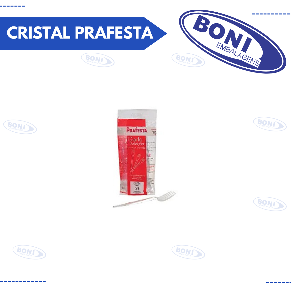 Garfo descartável para refeição, linha Premium, da marca Prafesta, no modelo Cristal (transparente). Fabricado com material resistente de alta qualidade, proporciona um visual elegante e é ideal para eventos e festas sofisticadas. Embalagem com 50 unidades, garantindo praticidade e higiene, projetado para uso único, facilitando o descarte após o uso.