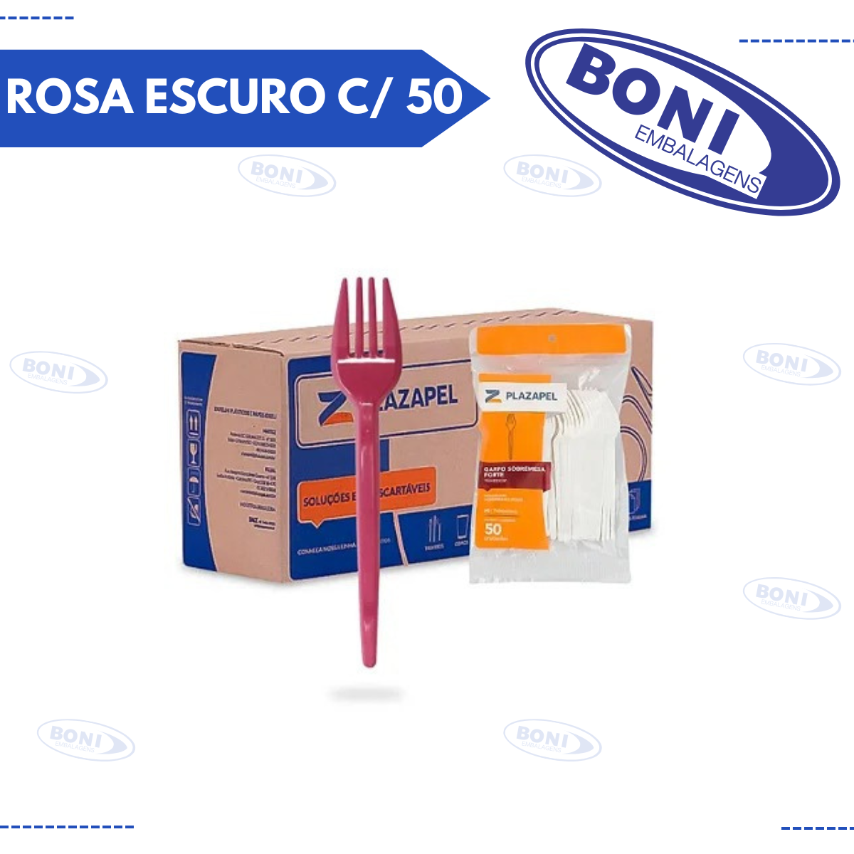Garfo descartável na cor rosa escuro, da marca Plazapel. Perfeito para eventos, festas e ocasiões especiais, acrescentando elegância e personalidade à mesa. Feito de material resistente e de qualidade, proporciona segurança e praticidade. Embalagem com 50 unidades, indicado para uso único, facilitando o descarte após a utilização.