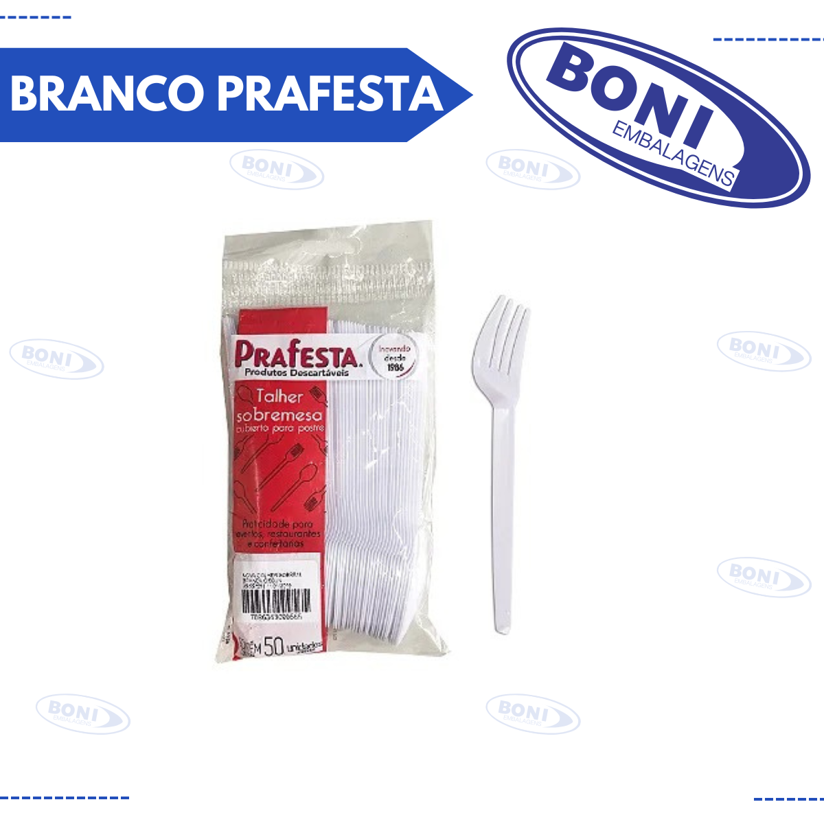 Garfo descartável para sobremesa, na cor branca, da marca Prafesta. Compacto e prático, ideal para servir sobremesas em eventos, festas e reuniões. Fabricado com material leve e resistente, oferece praticidade e higiene. Embalagem com 50 unidades, projetado para uso único, facilitando o descarte após a utilização.