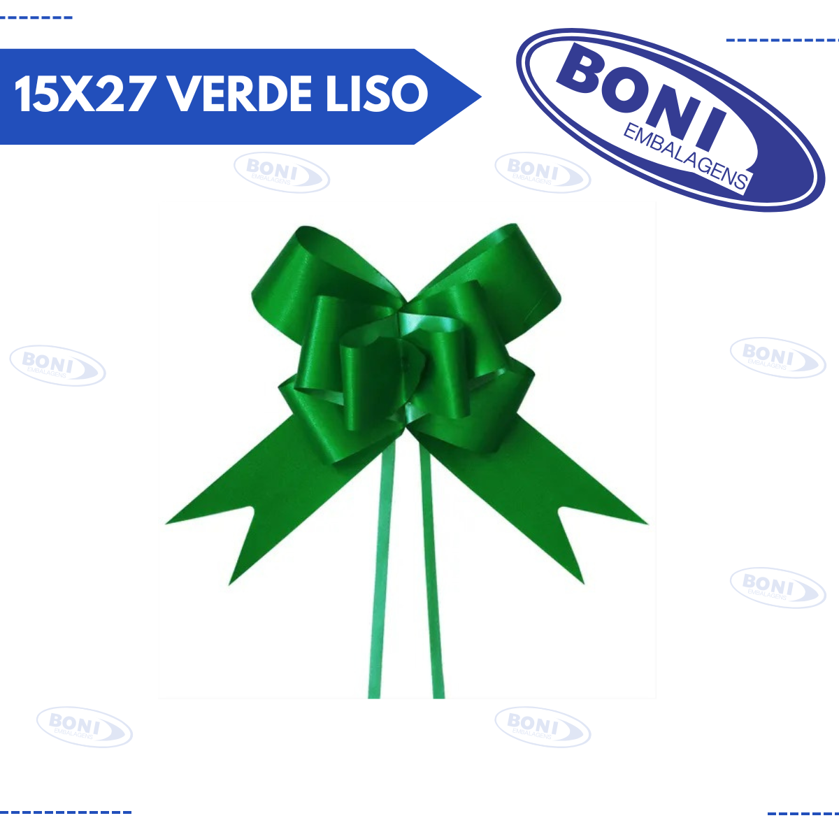 Laços decorativos de 15x27 cm, na cor verde lisa, ideais para dar um toque vibrante e elegante a presentes, embalagens e decorações. O pacote contém 10 unidades, feitas com material de alta qualidade que garante resistência e um acabamento impecável. Perfeitos para festas, eventos e outras ocasiões especiais.