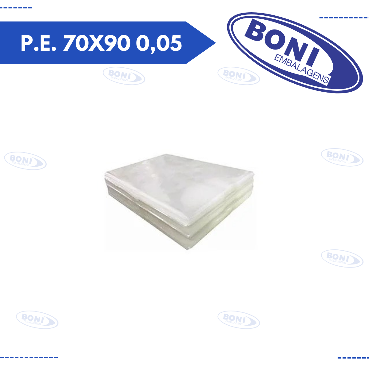Plástico transparente em polietileno (P.E.) com dimensões de 70 cm de largura por 90 cm de altura e espessura de 0,05 mm (50 microns). Material flexível e resistente, ideal para embalar, proteger e conservar produtos diversos, garantindo visibilidade do conteúdo e proteção contra poeira, sujeira e umidade. Utilizado em setores comerciais, industriais, alimentícios e domésticos, especialmente para embalagens de produtos de maior tamanho.