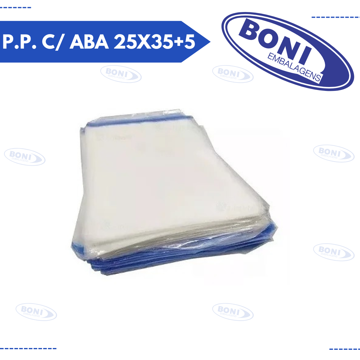 Plástico transparente em polipropileno (P.P.) com dimensões de 25 cm de largura por 35 cm de altura, mais uma aba de 5 cm. Material de alta transparência e resistência, ideal para embalar produtos de médio a grande porte, oferecendo proteção contra poeira, sujeira e umidade. A aba adicional facilita o fechamento e proporciona maior segurança à embalagem. Comumente utilizado nos setores alimentício, comercial e artesanal, garantindo a conservação e apresentação visual dos produtos embalados.