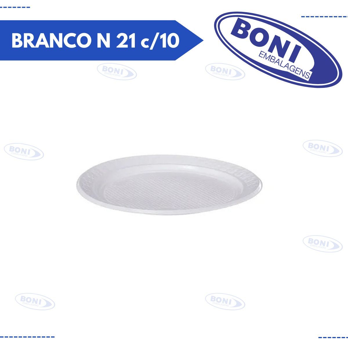 Prato plástico branco Nº 21, com embalagem contendo 10 unidades. Ideal para festas, eventos e uso diário, perfeito para servir porções generosas de alimentos, como pratos principais, saladas, massas ou refeições completas. Fabricado em plástico resistente, oferece durabilidade e facilidade no manuseio, sendo também fácil de limpar. Seu design simples e elegante, na cor branca, proporciona versatilidade e combina com diferentes estilos de decoração e temas de evento. A embalagem com 10 unidades oferece uma solução prática e econômica para atender pequenos grupos ou eventos.