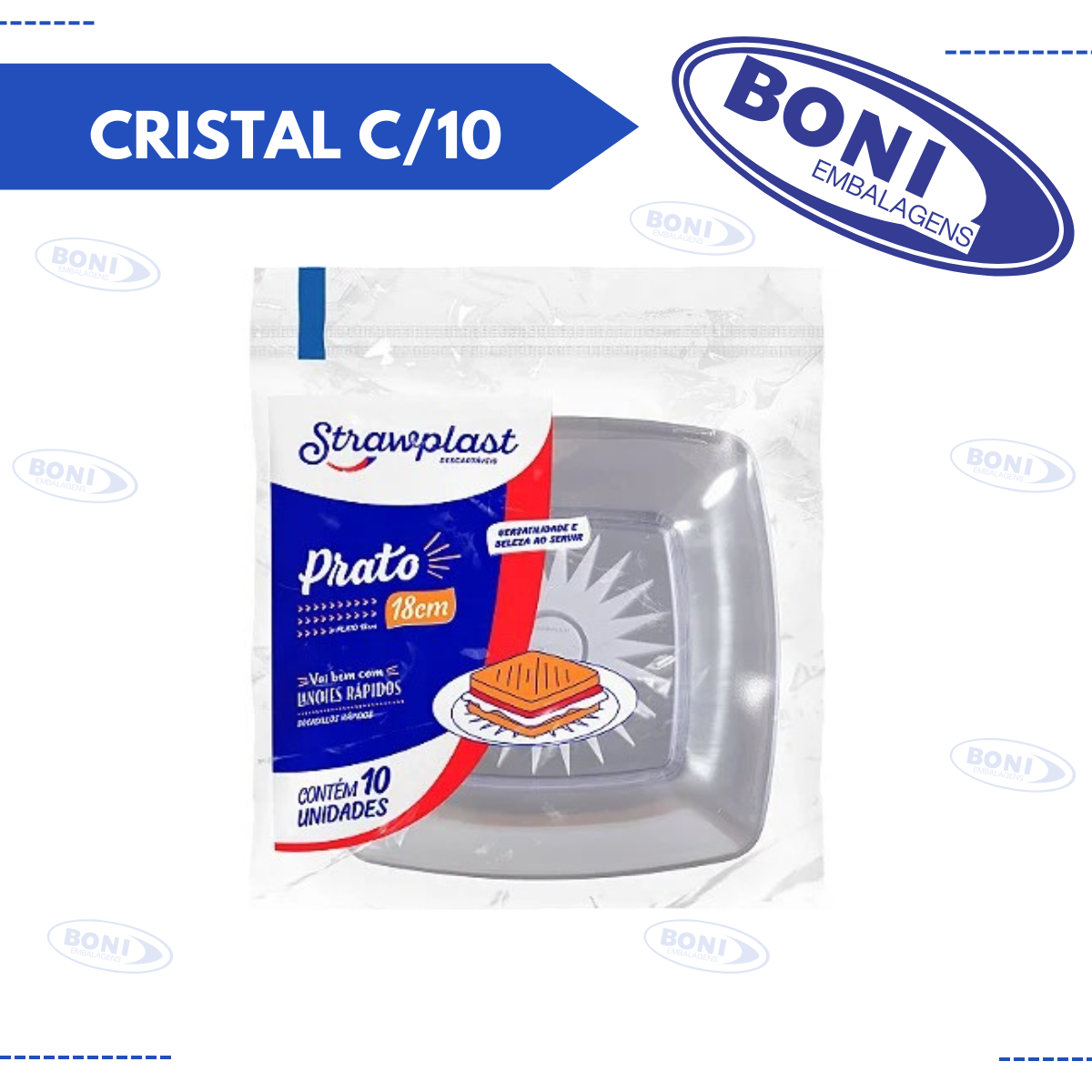 Prato quadrado de 18 cm, na cor cristal, ideal para adicionar sofisticação e elegância à sua mesa em festas, eventos ou no dia a dia. Fabricado pela Strawplast, é resistente e oferece praticidade no uso. Produto descartável, higiênico e de fácil manuseio, perfeito para servir uma variedade de pratos. Embalagem com 10 unidades, ideal para quem busca qualidade e estilo na hora de servir.
