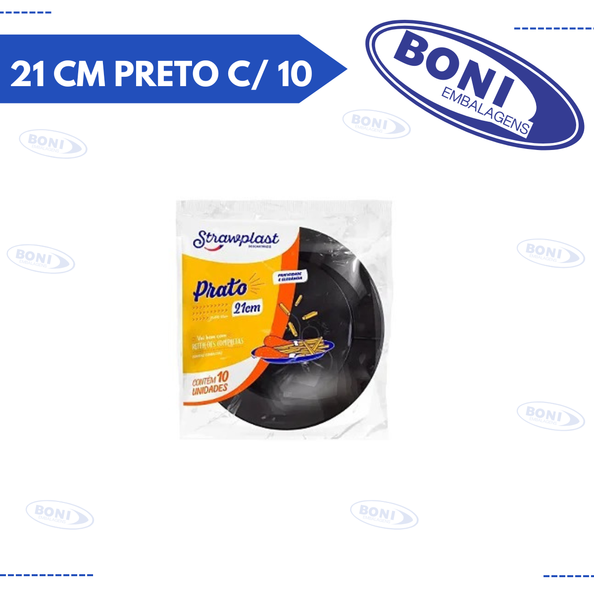 Prato redondo de 21 cm na cor preta, perfeito para servir refeições, petiscos e sobremesas com um toque moderno e elegante em festas e eventos. Fabricado pela Strawplast, é resistente, prático e higiênico. Produto descartável, ideal para facilitar o manuseio e o descarte. Oferecendo praticidade e sofisticação para diversas ocasiões.