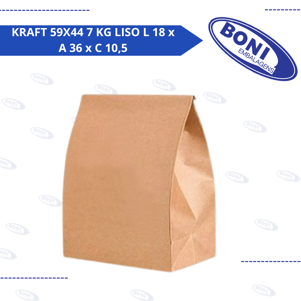 SACO DE PAPEL KRAFT 59X44 7 KG LISO L 18 x A 36 x C 10,5 C/ 100