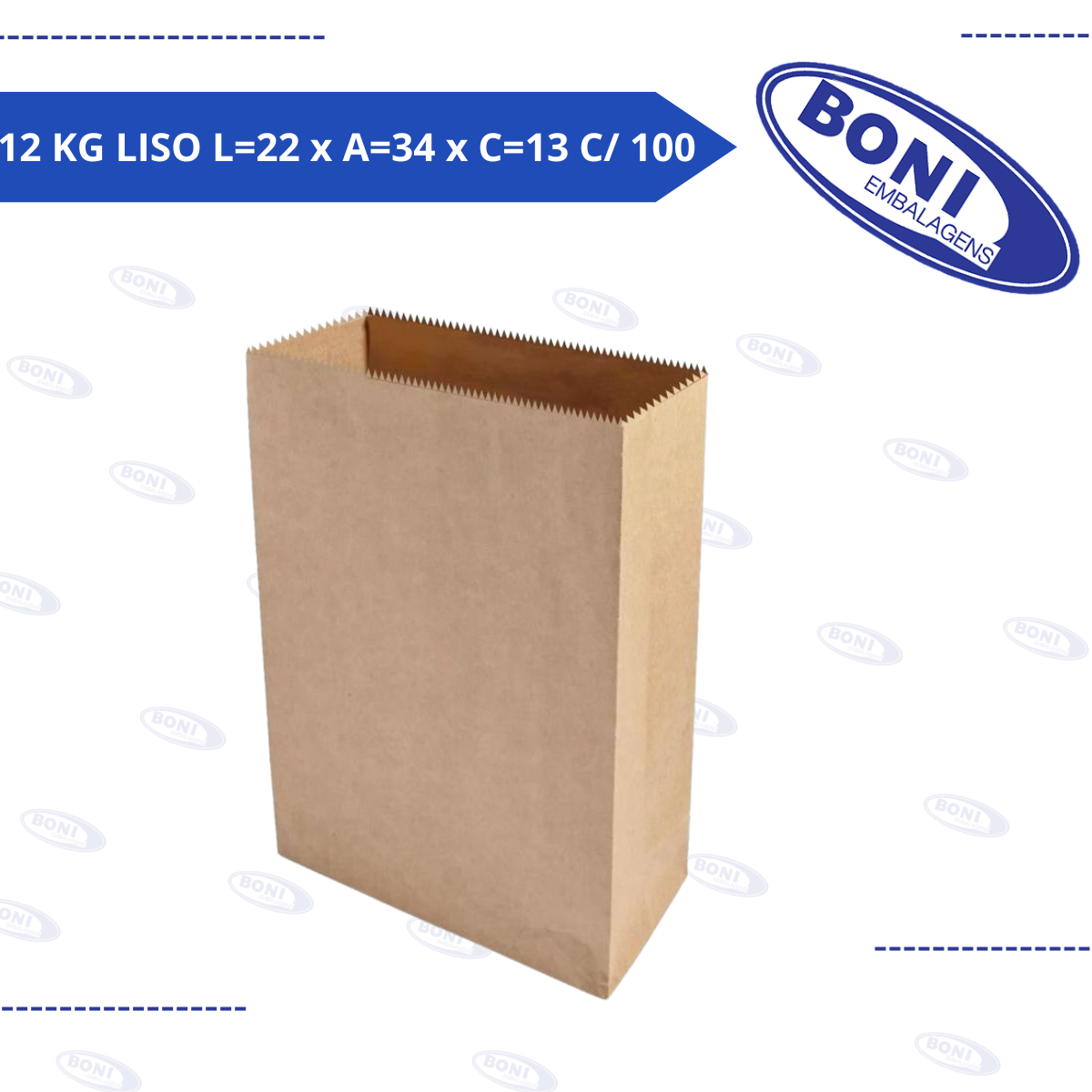 SACO DE PAPEL KRAFT 72X44 12 KG LISO L 22 x A 34 x C 13 C/ 100